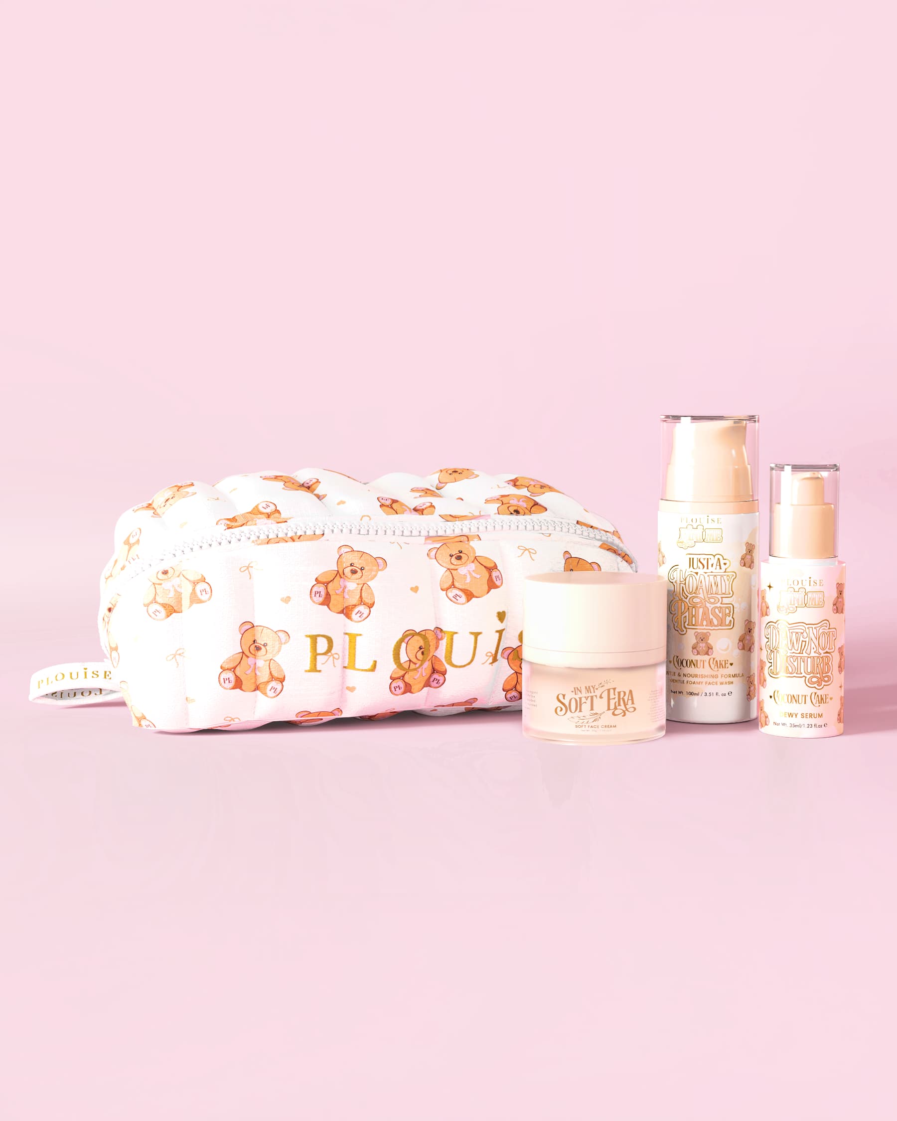 Inclusief de Softest Touch Makeup Bag met een delicate all-over teddybeerprint voor een subtiele, gezellige look.